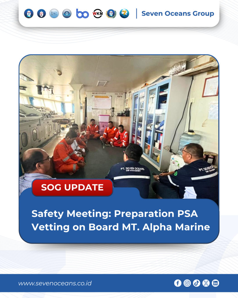 The PT. Seven Oceans Ship Management team together with the crew of MT. Alpha Marine conducted a Safety Meeting in preparation for the upcoming PSA Vetting.